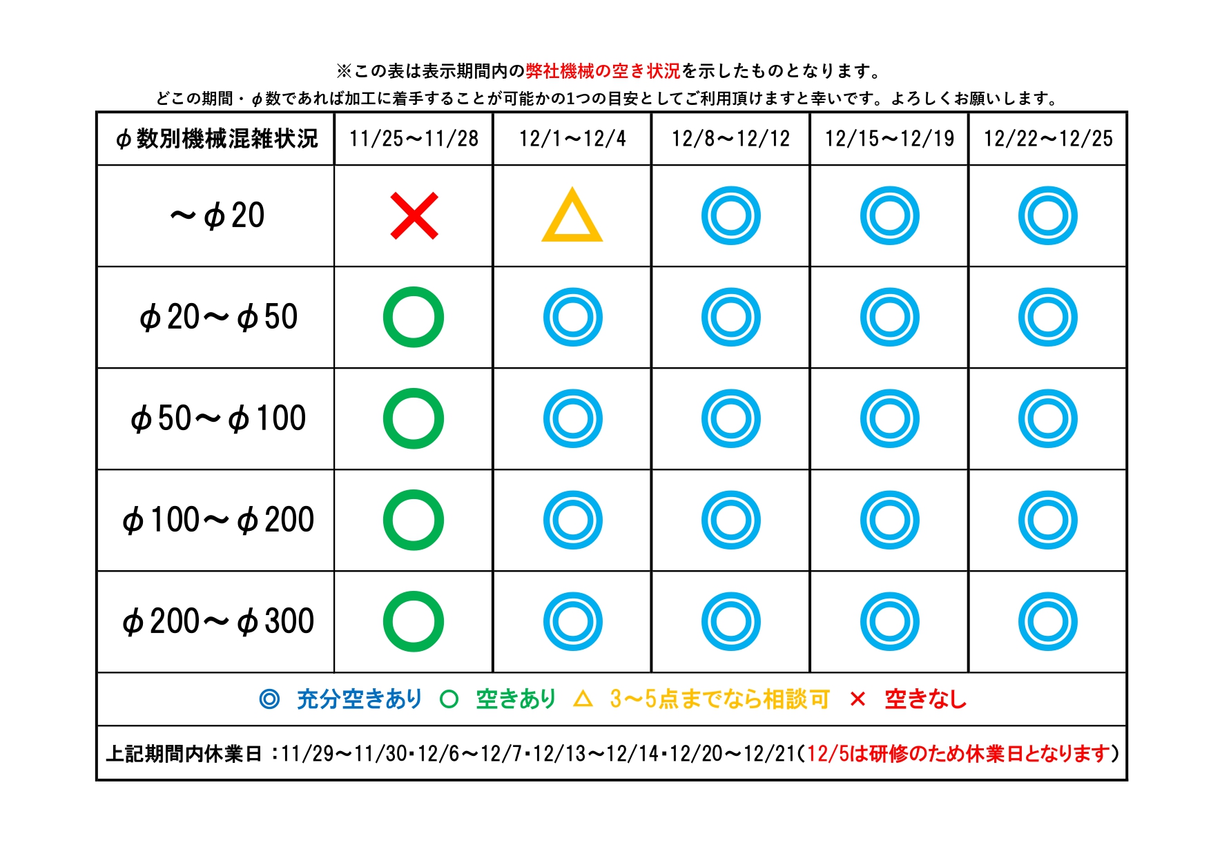 さて今回は、11/25~12/25の期間における機械の空き状況をお知らせします📢