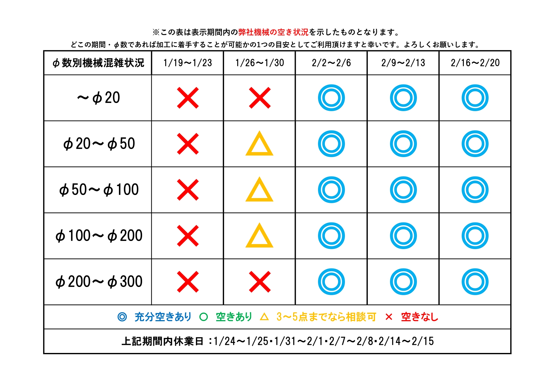 1/26週まで加工スケジュールがかなり埋まってまいりました!